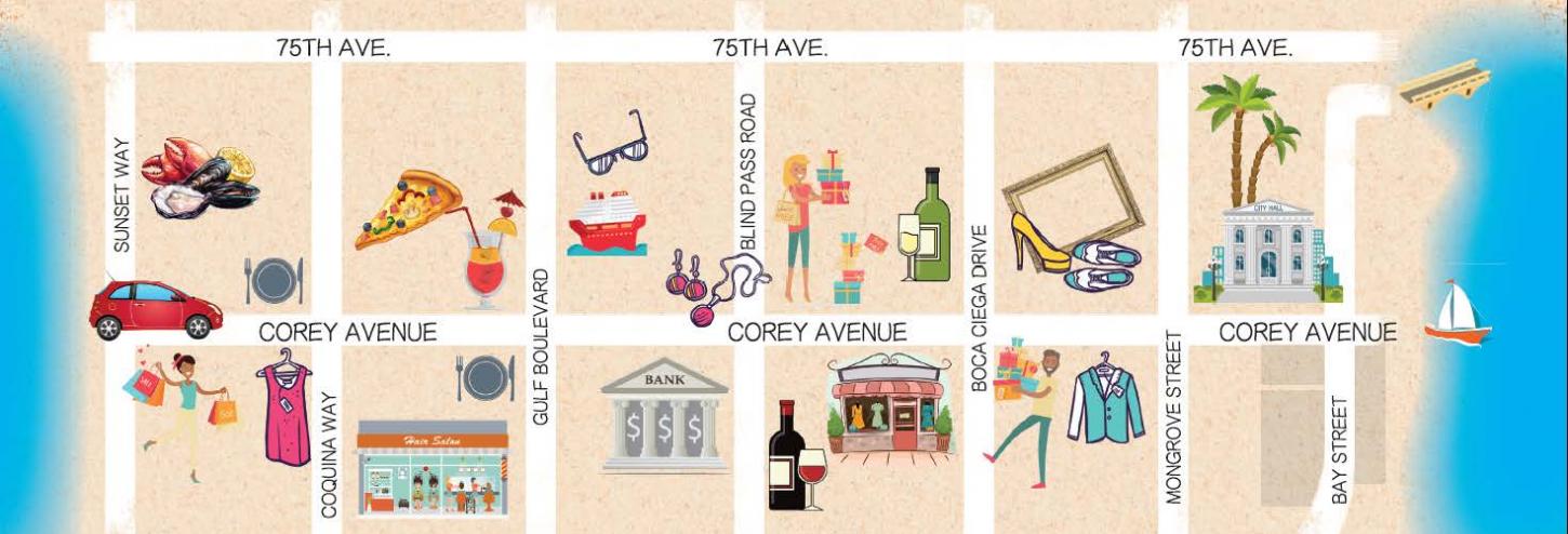 For over six decades, Corey Ave. has thrived at the heart of St. Pete Beach. The Corey Avenue Business Association sponsors lots of fun events year round including parades, wine tastings, arts and crafts festivals, and a seasonal (October through May) Sunday Morning Market supporting up to 80 vendors and featuring fresh food, organic produce, hand crafts and live music.