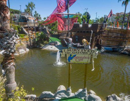 Smugglers Cove Mini Golf takes you on an adventurous journey through a tropical paradise, nestled in Madeira Beach. The beautifully landscaped mini-golf course is designed with lush gardens, cascading waterfalls, and intriguing caves, all inspired by the legend of daring pirates and hidden treasures. Not to mention, in between holes you can observe and even feed the live American Gators! Perfect for all ages, Smugglers Cove offers a thrilling and family-friendly escape from the everyday hustle and bustle. Whether you're a novice or a seasoned pro, come test your skills on the challenging holes while immersing yourself in the enchanting atmosphere of a little slice of paradise. Make sure to ask about the mystery hole, a hole-in-one wins a prize every day!